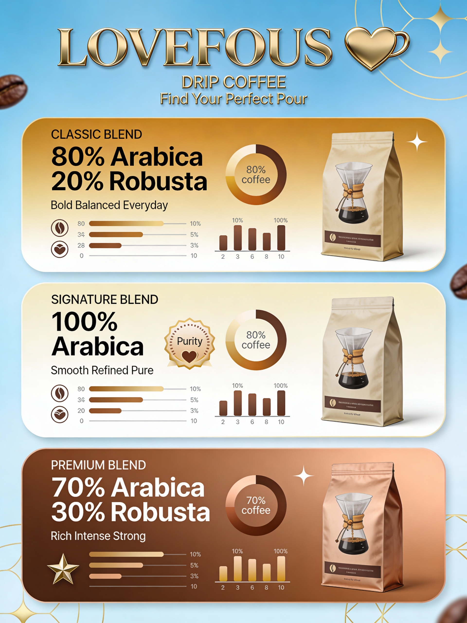 Roasted coffee made from 100% whole beans — 70% Arabica / 30% Robusta. The coffee is finely ground and packed into paper filter bags to keep the grounds inside while hot water seeps through, extracting the coffee’s flavor into the cup. Paper-filtered coffee delivers a clean, pure taste with a gentle aroma and a medium strength. It’s ideal for everyday drinking, especially for people on the go, offering the convenience of brewing coffee anytime, anywhere while preserving the true essence of coffee.